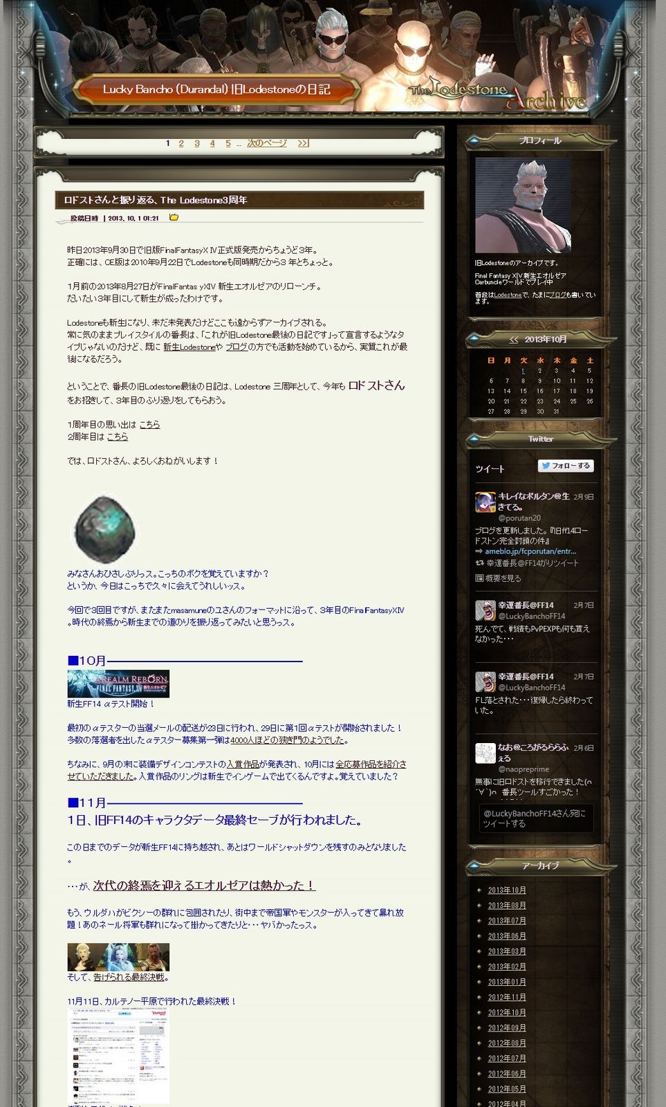 2015年1月7日。旧Lodestoneのアーカイブが、2015年3月31日を持って停止される、というアナウンスが公式サイトに掲載された。