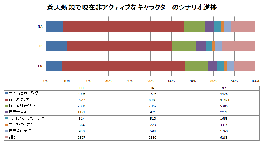 次に、アクティブ以外の、休止キャラクターの進行状況や削除キャラクターの割合を見てみよう。