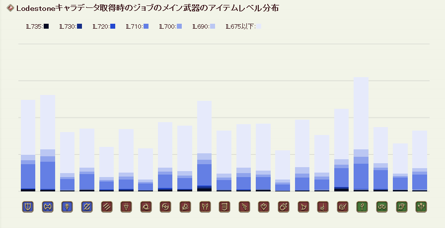 棒グラフの高さはデータ取得時のキャラクターのジョブの分布になっている。